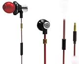 Alpatronix High Performance Tangle-Free Earphones with Microphone for iPhone, iPad, iPod and BlackBerry - Black/Red