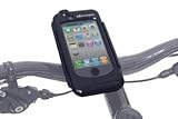 The BioLogic Bike Mount for iPhone 4 lets you attach your iPhone 4 to the handlebar of your bike so you can use GPS and an appropriate app to track your position, your speed, or distance travelled, while you ride. The Bike Mount is a weatherproof case with a welded touch-sensitive membrane so your iPhone is completely protected from the weather but still fully functional. The inside of the case is lined with silicone for shock resistance.