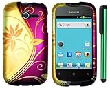 Huawei Ascend Y M866 - Purple Gold Splendid Flower Vine Swirl Premium Design Protector Hard Cover Case (U.S. Cellular) + Combination 1 of New Metal Stylus Touch Screen Pen (4" Height, Random Color- Black, Silver, Hot Pink, Green, Light Green, Red, Blue, Light Blue, Purple and Gold)