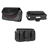 Premium High Quality Leather Horizontal Large Size Pouch Protective Carrying Cell Phone Case with Belt Clip and Belt Loops - Black